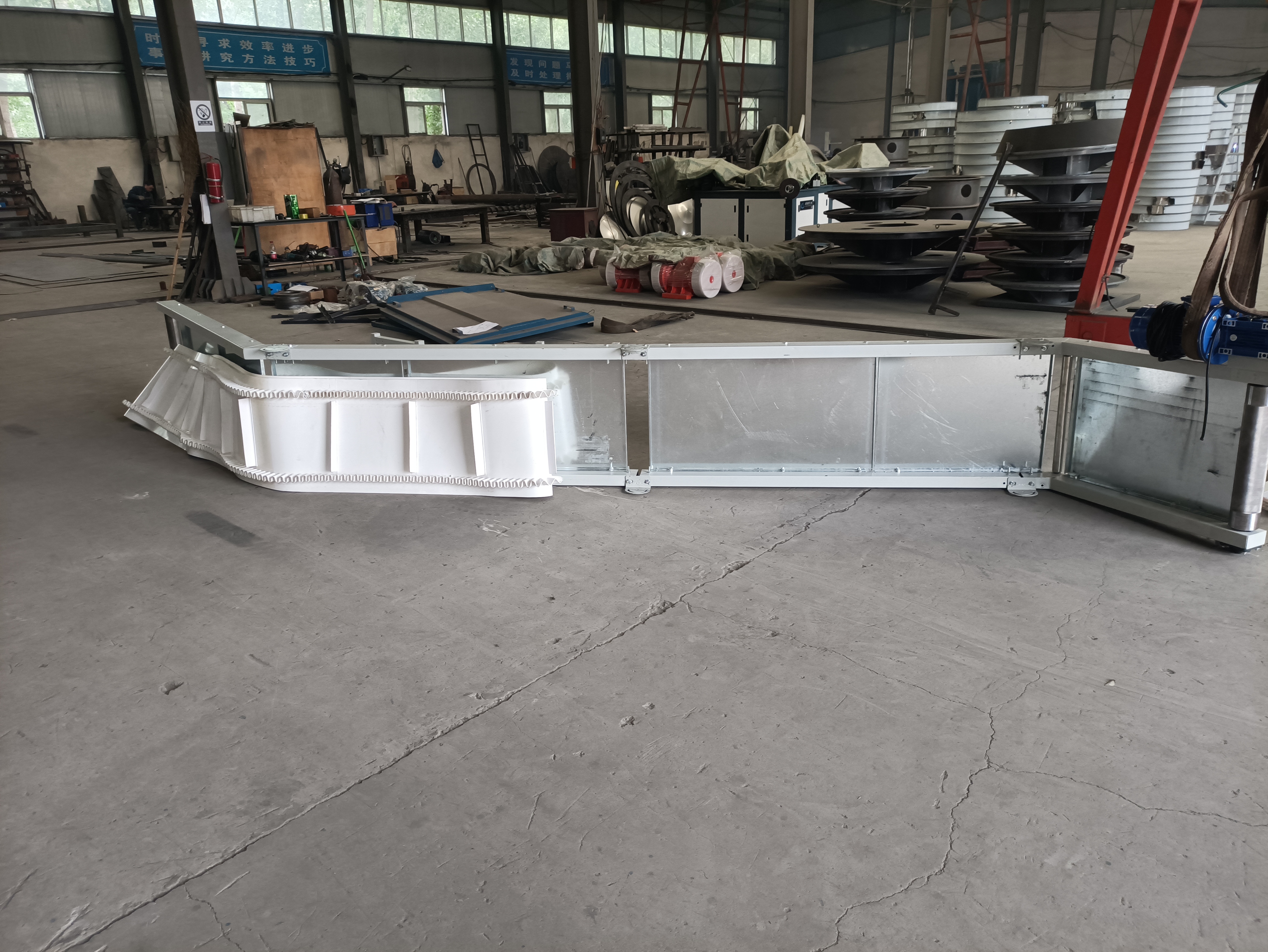 針對(duì)粉狀、顆粒狀物料:首選波狀擋邊帶加隔板系統(tǒng)。這種組合能形成封閉的匣形空間,有效防止物料在傾角高達(dá)60°甚至90°的爬升過(guò)程中滑落和飛揚(yáng)。同時(shí)要求設(shè)備具備良好的密封結(jié)構(gòu)。