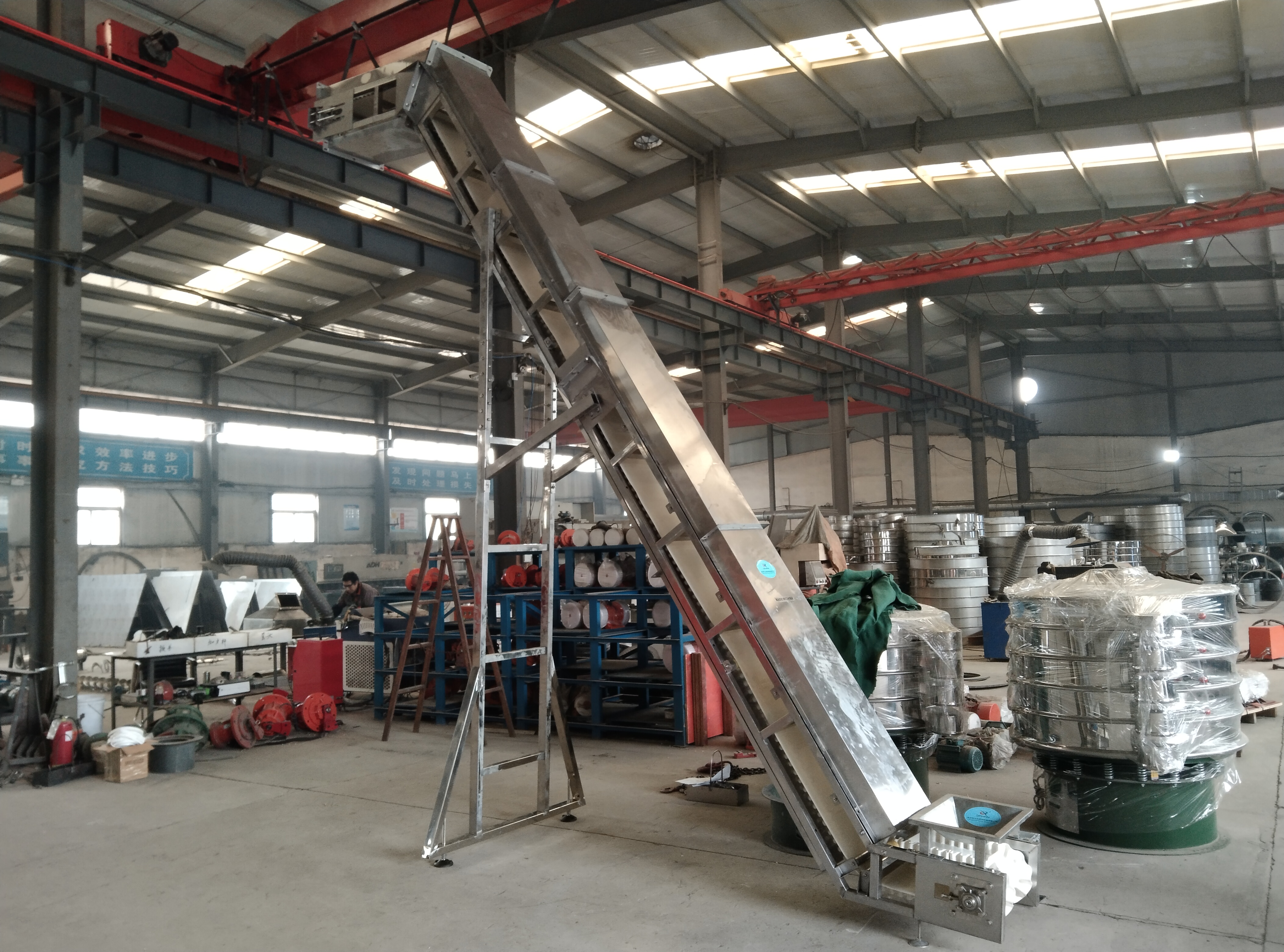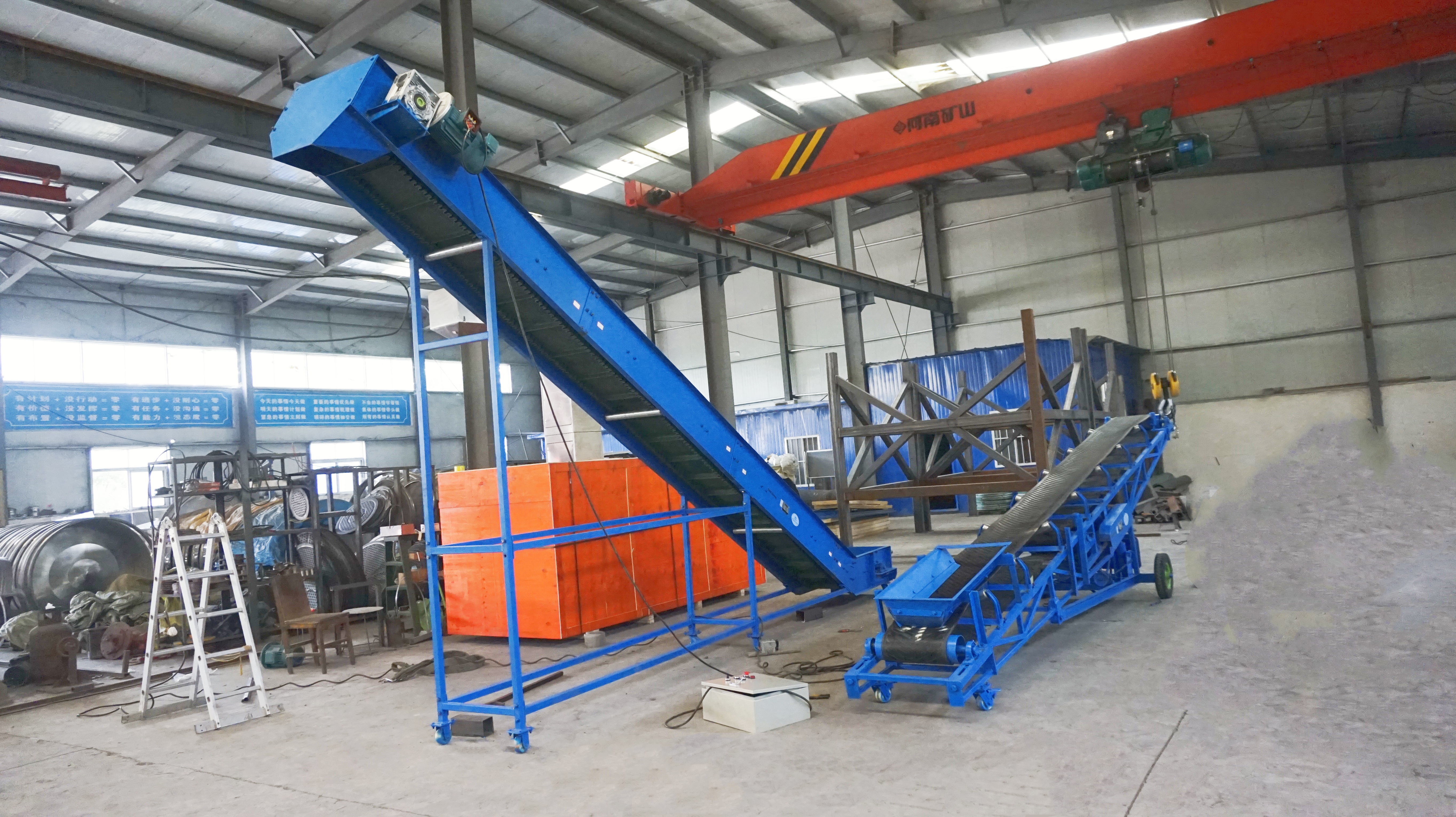 DJ型大傾角皮帶輸送機(jī):采用深槽裙邊輸送帶與格擋設(shè)計(jì),輸送傾角可達(dá)15°-90°,能實(shí)現(xiàn)大高度、大流量物料輸送,廣泛應(yīng)用于煤炭、礦石等重工業(yè)場(chǎng)景。因需承受更大載荷,機(jī)身支架與驅(qū)動(dòng)系統(tǒng)強(qiáng)度更高,價(jià)格區(qū)間為5萬(wàn)-8萬(wàn)元。